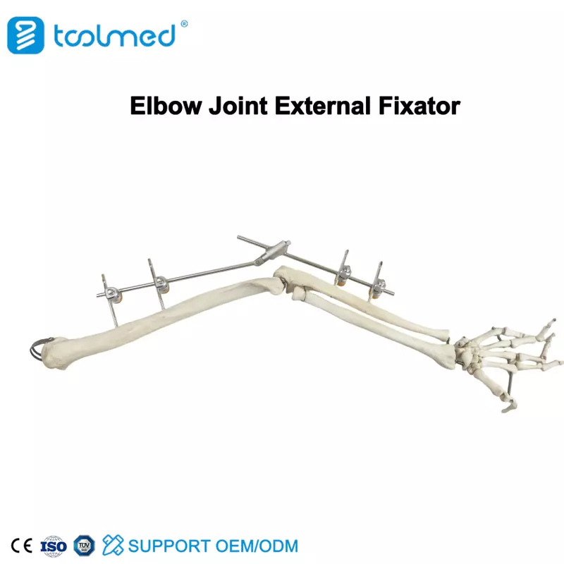 The TOOLMED Elbow Joint External Fixator is the ultimate solution for complex elbow trauma. By bridging the gap between rigid stability and functional movement, it ensures that even the most severe elbow injuries are held in perfect alignment, paving the way for a successful recovery and the preservation of natural arm flexibility and strength.