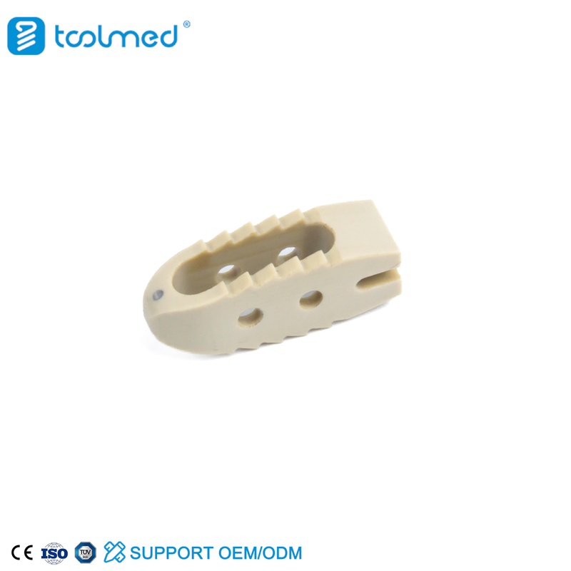 The primary advantage of the TOOLMED PLIF Cage is its anatomical design which provides exceptional primary stability. Its radiolucent nature ensures that surgeons can easily monitor the progress of the fusion mass without the interference of metal artifacts on X-rays or CT scans. Furthermore, the material properties of PEEK help prevent the cage from sinking into the vertebral endplates (subsidence), ensuring long-term maintenance of disc height.