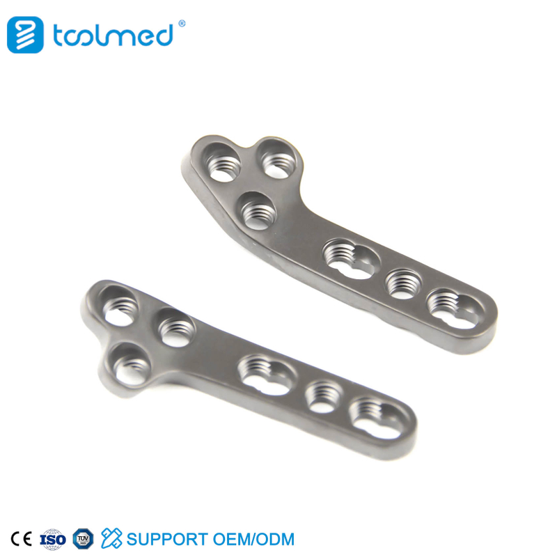 The primary advantage of the TOOLMED TPLO system is the reduction in "screw-out" complications. Because the screws lock into the plate, they cannot loosen or back out due to the repetitive vibration of a dog walking. The Titanium construction is a significant advantage over stainless steel; it is more "biological," causing less tissue reaction and having better infection resistance—a critical factor in TPLO where implant-associated infections can be devastating. Furthermore, the pre-contoured A-Type design fits the bone so well that surgeons spend less time bending the plate, which reduces the animal's time under anesthesia and maintains the strength of the Titanium alloy.